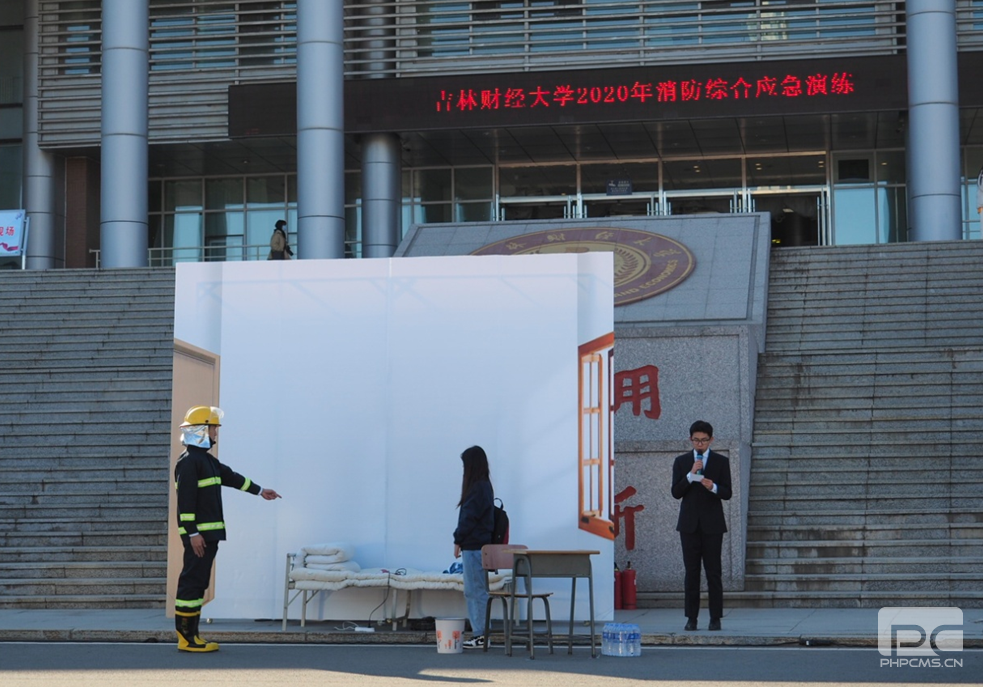 根据学校防火委员会工作安排,11月9日,我校在图书馆和德实广场举行消防综合应急演练。副校长刘鹤、副校长于金欢、净月区消防救援大队大队长王英楠、副大队长吴菲、净月区兄弟高校消防安全负责同志、学校重点部位工作人员、全体辅导员以及2020级新生同学参加演练。